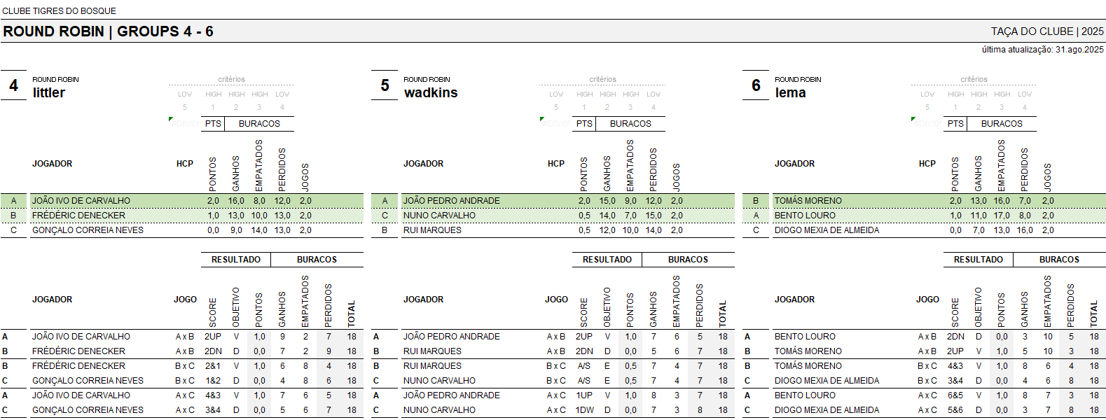 – Durante o período de avaliação o sócio deverá jogar obrigatoriamente um torneio da ordem de mérito