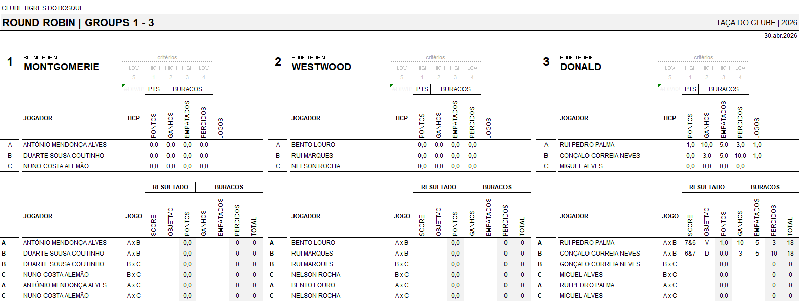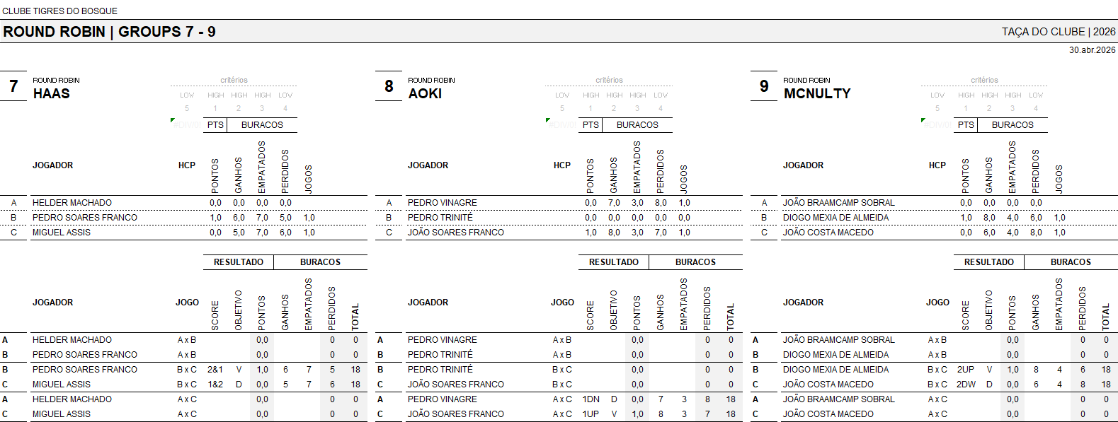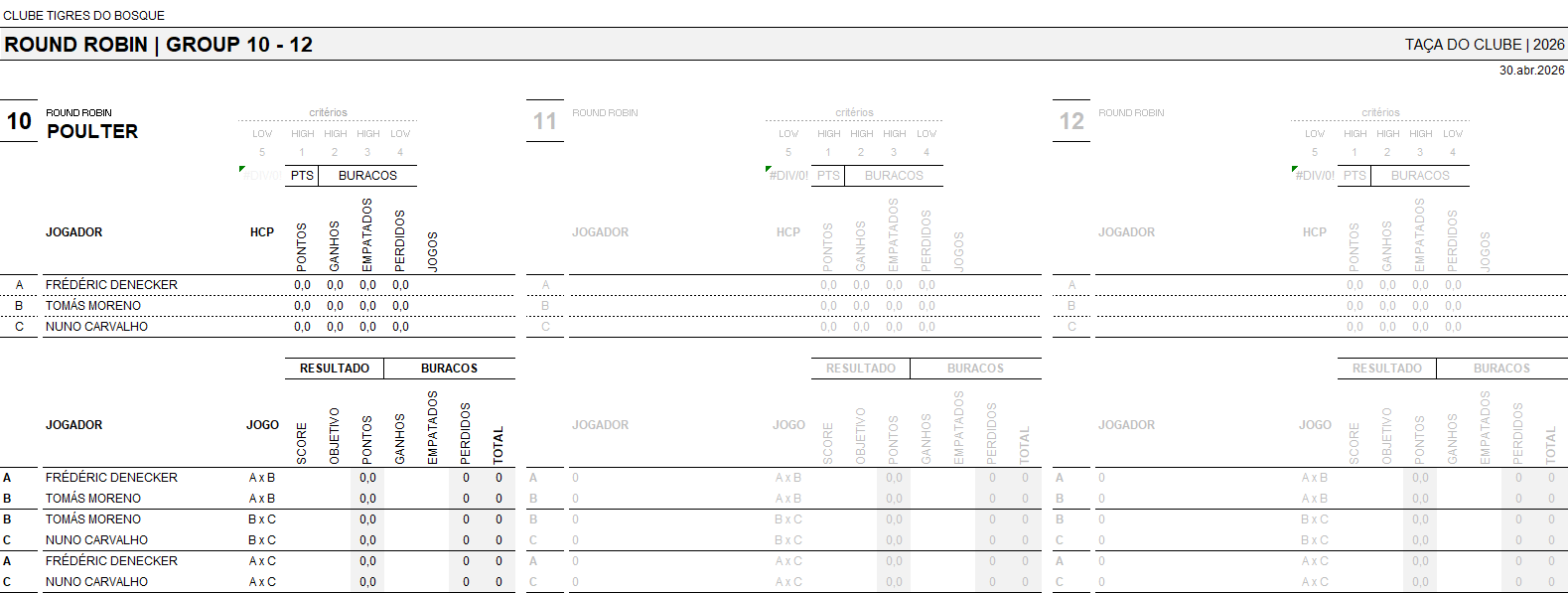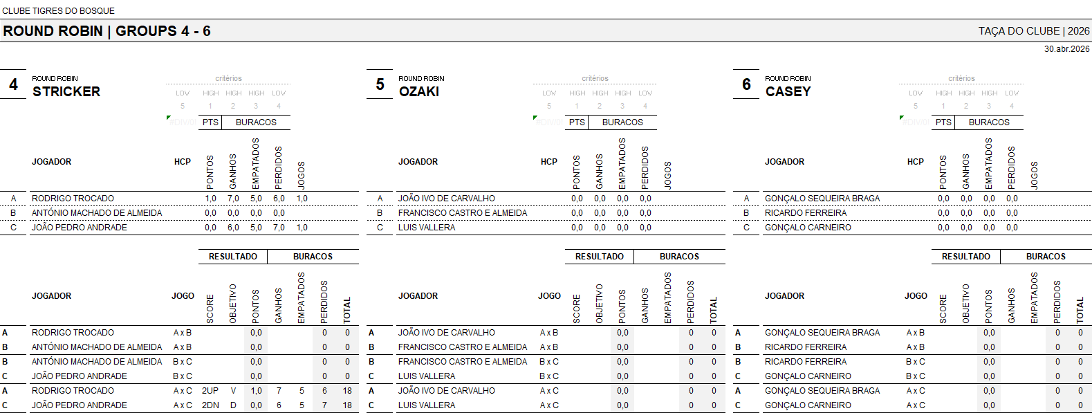 – Durante o período de avaliação o sócio deverá jogar obrigatoriamente um torneio da ordem de mérito